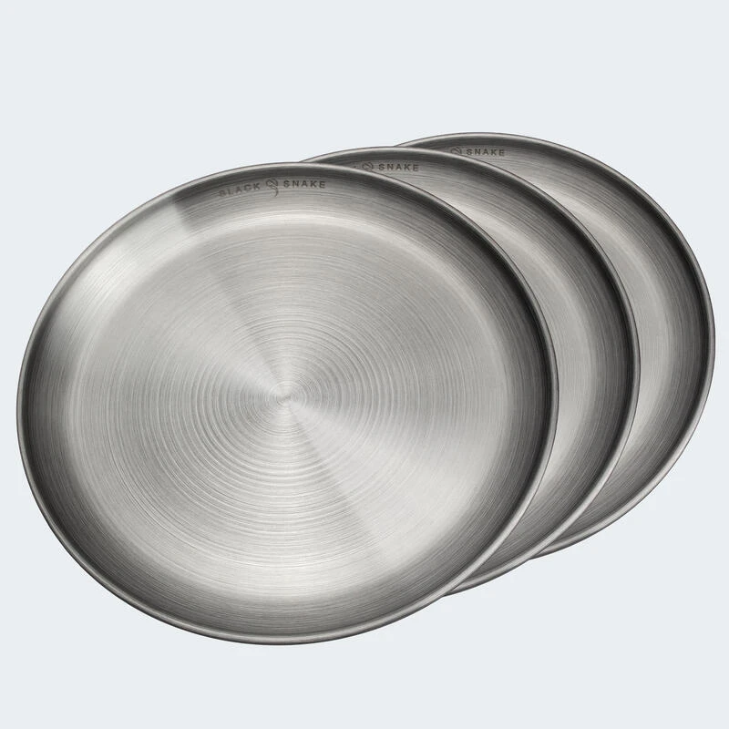 Assiette Plate De Camping | Diamètre Env. 23 Cm | Acier Inox | 3 Assiettes
