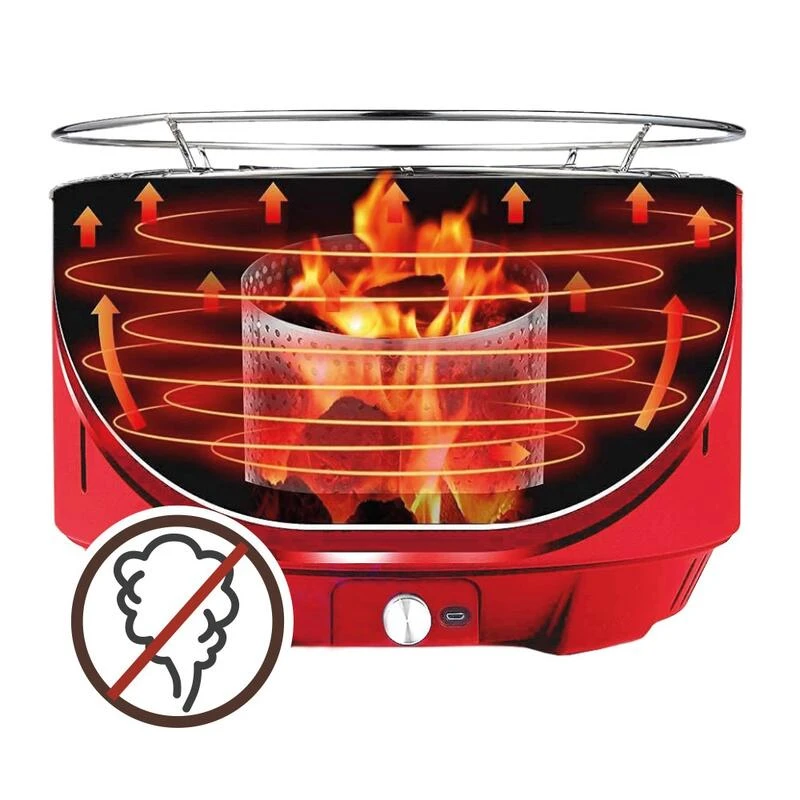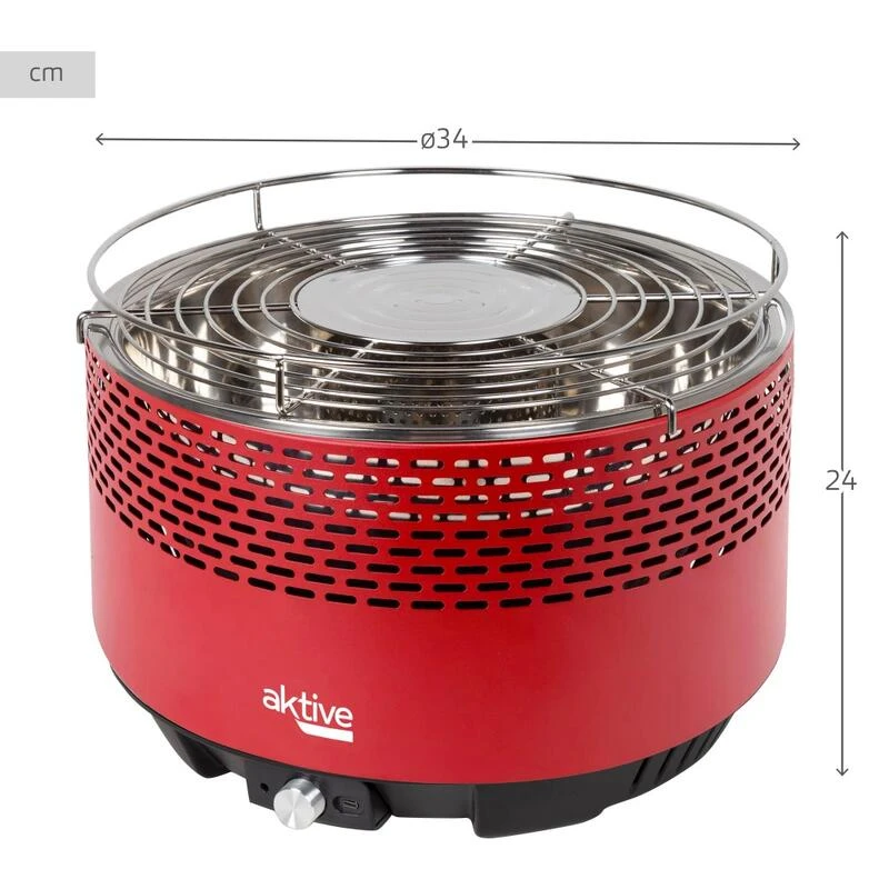 Barbecue De Table Sans Fumée Rond Rouge 2 En 1 Ø34 Cm Aktive