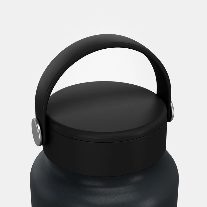 Le gourde possède une large ouverture (6 cm) afin de la remplir facilement, notamment avec des glaçons. Le bouchon s’ouvre facilement en le dévissant. Il possède une anse articulée pour faciliter le transport et le rangement. Le bouchon possède également un petit logement étanche qui peut vous servir à mettre vos sachets de thé une fois qu’ils sont infusés par exemple, ou bien à stocker des cachets ou des compléments alimentaires.